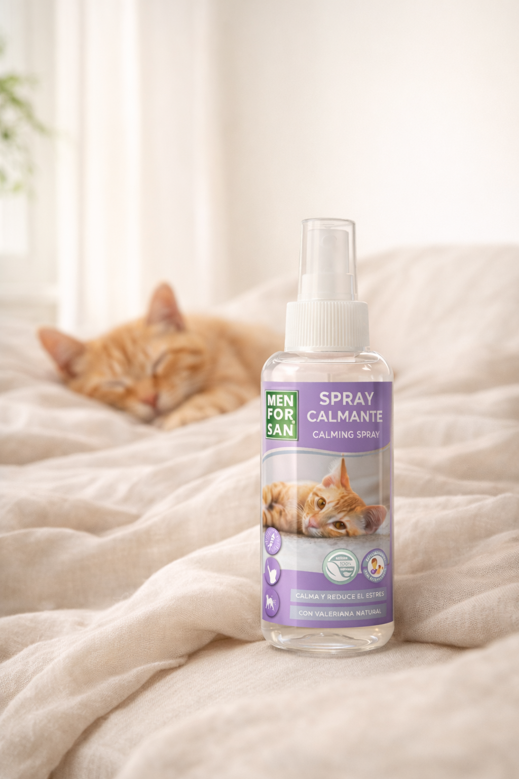 Schenke deinem Stubentiger mehr Ruhe und bringe gleichzeitig Ordnung in dein Zuhause – mit dem Menforsan Beruhigungs- & Trainingsspray.